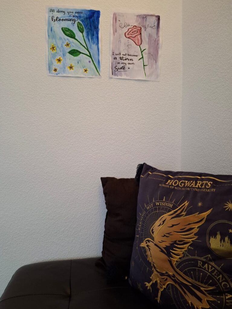 Fue asà como, al terminar mis dibujos y agregarles ciertos detalles extra, me di cuenta que serÃa buena idea hacer mi propio mural de dibujos en mi nuevo estudio… igual que Paula tiene en su cuarto 🙂